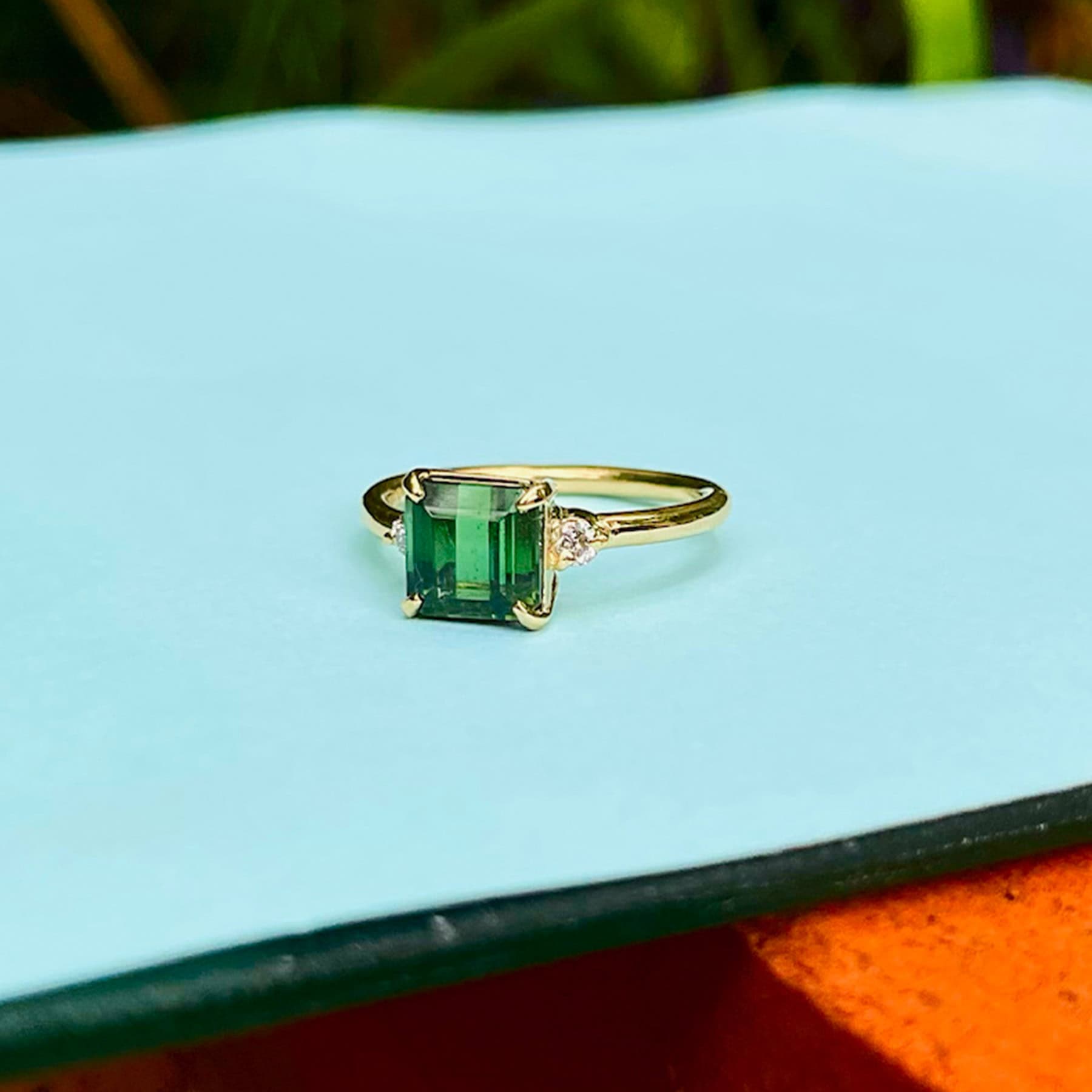 Tourmaline and diamond ring